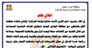 اليوم السابع - مشروع القرى الآمنة غذائيا يطرح برنامج تدريبي وفرص دعم الأفكار الزراعية بالفرافرة