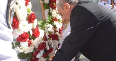 بالصور- محافظ بورسعيد يضع إكليلًا من الزهور على النصب التذكاري بميدان الشهداء