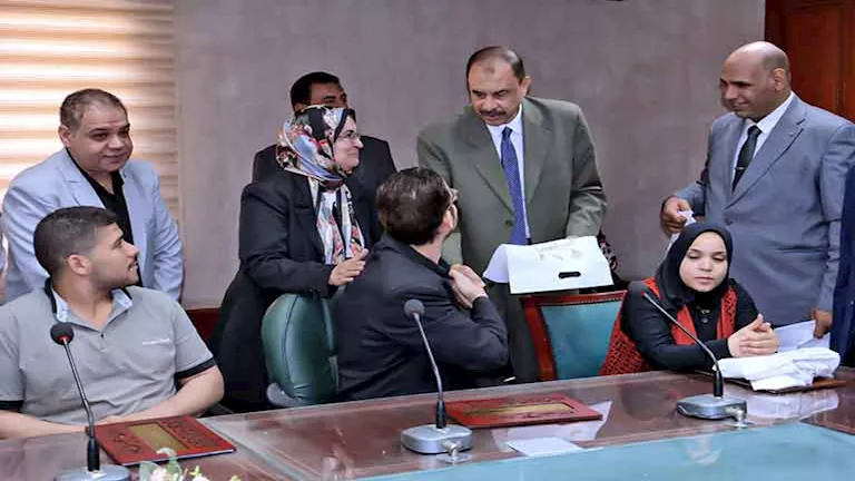مصراوي - محافظ سوهاج يسلم 16 عقد عمل و30 كرسيًا متحركًا لذوي الإعاقة (فيديو وصور)