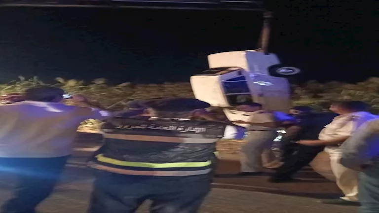 إصابة 7 أشخاص في حادث انقلاب ميكروباص على طريق أسيوط الصحراوي الغربي بالفيوم