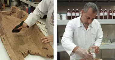 اليوم السابع - إعادة ترميم غطاء تابوت خشبي علوي من العصر المتأخر بالمخزن المتحفي بأهناسيا