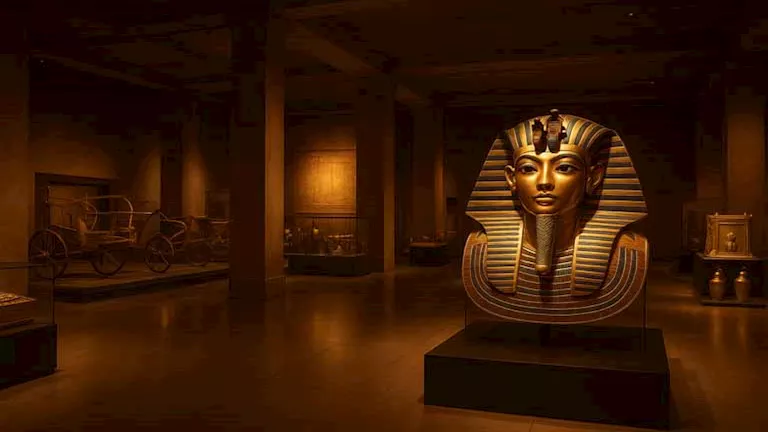 مصراوي - تقنيات تُجسّد روح المقبرة الأصلية.. تفاصيل جديدة عن قاعتي توت عنخ آمون بالمتحف المصري الكبير