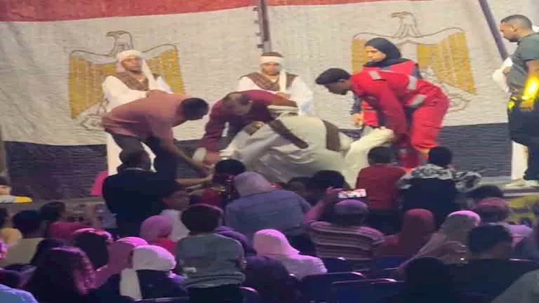 مصراوي - إصابة عارض من فرقة المنيا أثناء عرض بمهرجان الإسماعيلية للفنون الشعبية (صور)