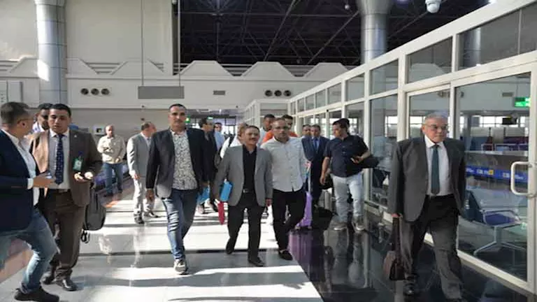 مصراوي - بالصور ـمحافظ أسيوط يستقبل أولى الرحلات الجوية الداخلية القادمة من القاهرة