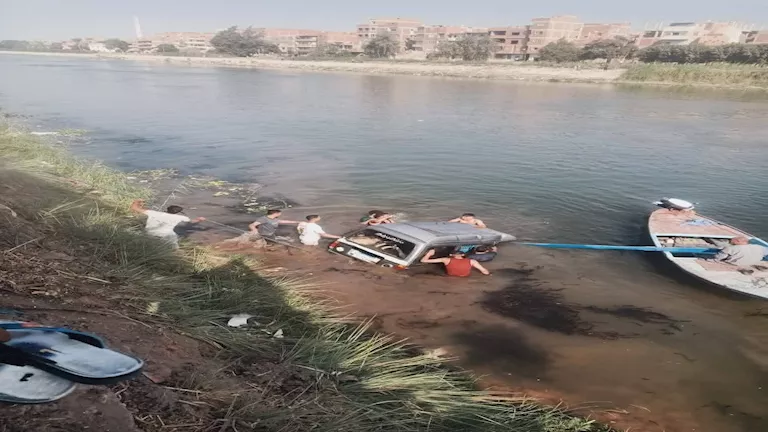 مصراوي - مصرع 3 أشخاص بينهم سيدة وابنتها إثر سقوط سيارة في ترعة بالقليوبية