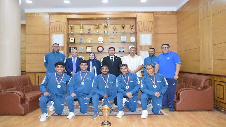 مصراوي - للمرة الرابعة.. تكريم منتخب جامعة بنها لخماسي كرة القدم (صور)