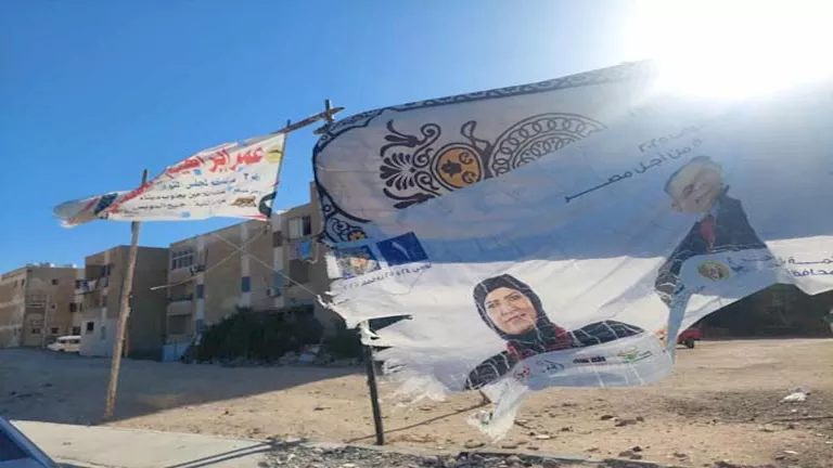 مصراوي - بالصور- الرياح الشديدة تمزق دعاية مرشحي مجلس النواب بجنوب سيناء
