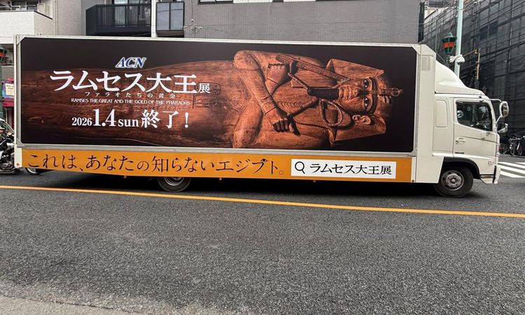 اهل مصر - شاحنة دعائية تجوب شوارع طوكيو للترويج لمعرض "رمسيس وذهب الفراعنة"