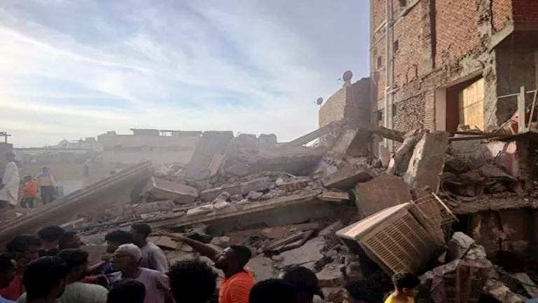 مصراوي - محافظ أسوان يتابع انهيار منزل قديم من 4 طوابق ببركة الدماس (صور)
